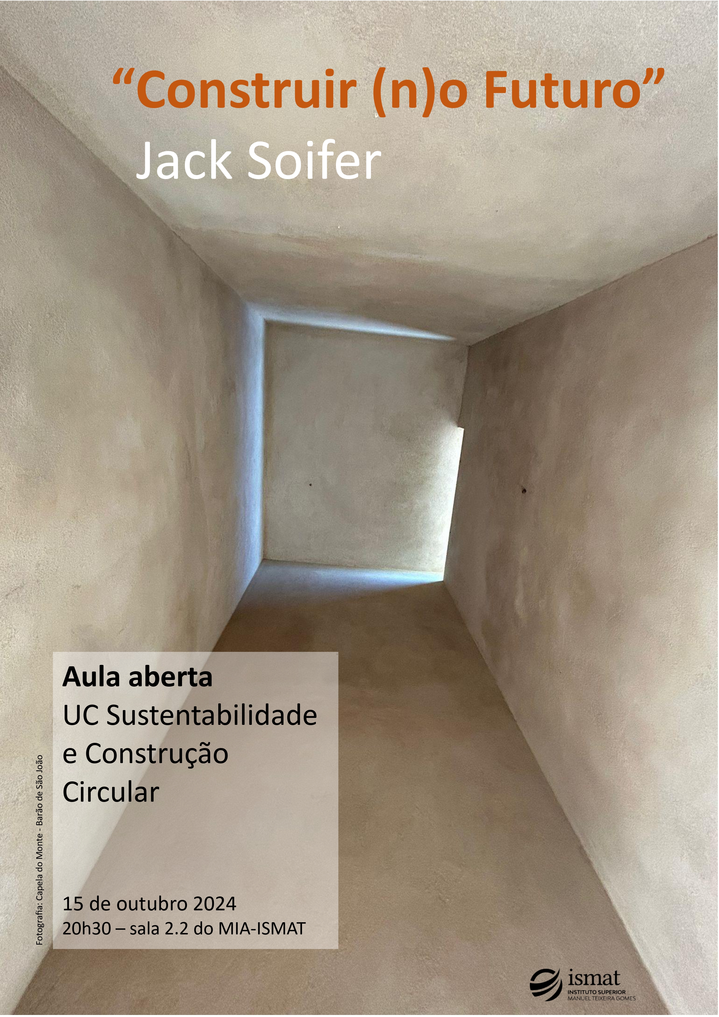 No âmbito da unidade curricular de Sustentabilidade e Construção Circular, do Mestrado Integrado em Arquitetura, a sessão aberta intitulada "Construir (n)o Futuro", com Jack Soifer que nos vai trazer casos práticos relacionados com a economia de energia na construção, sistemas passivos de condicionamento da temperatura e exemplos de materiais de construção alternativos.