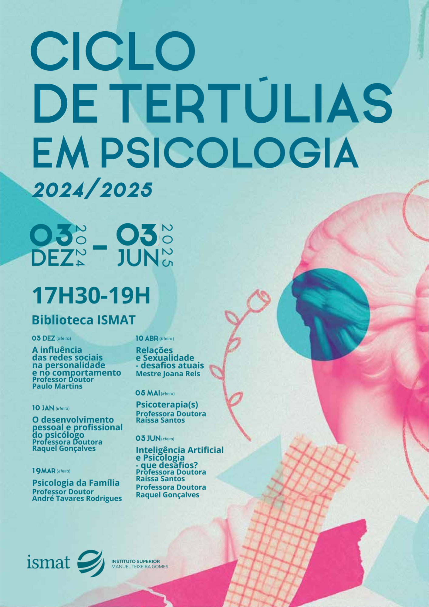 Nota: as datas do 2.º semestre poderão sofrer alterações após o conhecimento dos horários ou poderão ser convidados outros profissionais para se juntarem à dinamização de algumas tertúlias pela pertinência do seu conhecimento para o tema abordado.