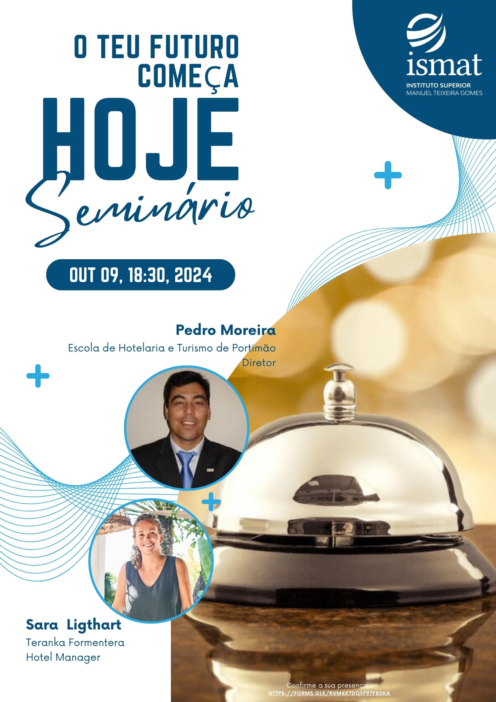 No âmbito da Licenciatura de Gestão do Turismo, vai realizar-se um seminário temático intitulado de “O Teu Futuro Começa Hoje”. Onde conta com a presença de dois convidados, Pedro Moreira, diretor da Escola de Hoteleira e Turismo de Portimão e Sara Ligthart, diretora hoteleira do Teranka Formentera, onde veem apresentar aos estudantes de Gestão do Turismo o trajeto das suas carreiras e sucessos no setor do Turismo e da Hospitalidade. O seminário acabará com uma sessão de perguntas e respostas.