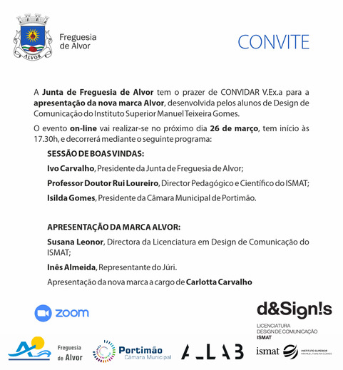 Após um ano, a nova marca de Alvor irá ser apresentada à comunidade, pelo que vimos convidá-los a estarem presentes no dia 26 de março (sexta-feira), pelas 17:30 via Zoom: