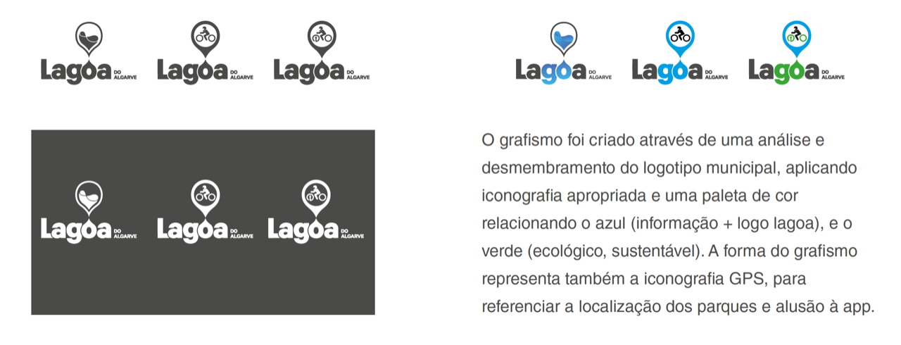 O grafismo foi criado através de uma análise e integração do conceito, levando ao desdobramento do logotipo municipal, aplicando iconografia orientada para a paleta de cores que representam: o azul (informação + logo Lagoa) e o verde (ecológico, sustentável).