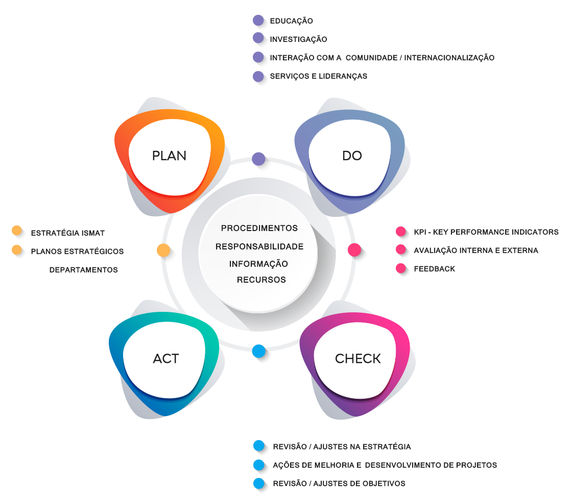 A política de qualidade do ISMAT baseia-se no princípio do desenvolvimento e melhoria contínua. O ciclo de melhoria (PDCA) está incorporado em todas a atividades e processos.